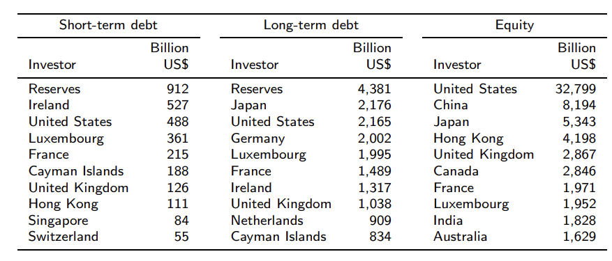 - 투자자 (Investors) 88개국과 외환보유고 (reserve) 데이터를 활용