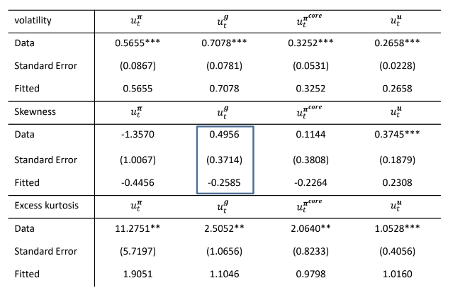 이때, $E\left[\left(u_{t}^{s}\right)^{3}\right] \approx 0 ; \quad E\left[\left(u_{t}^{d}\right)^{3}\right]<0$ 이라면, Co-skewness 모멘트는 $\sigma_{\pi d}, \sigma_{g d}$ 을 식별할 수 있다.